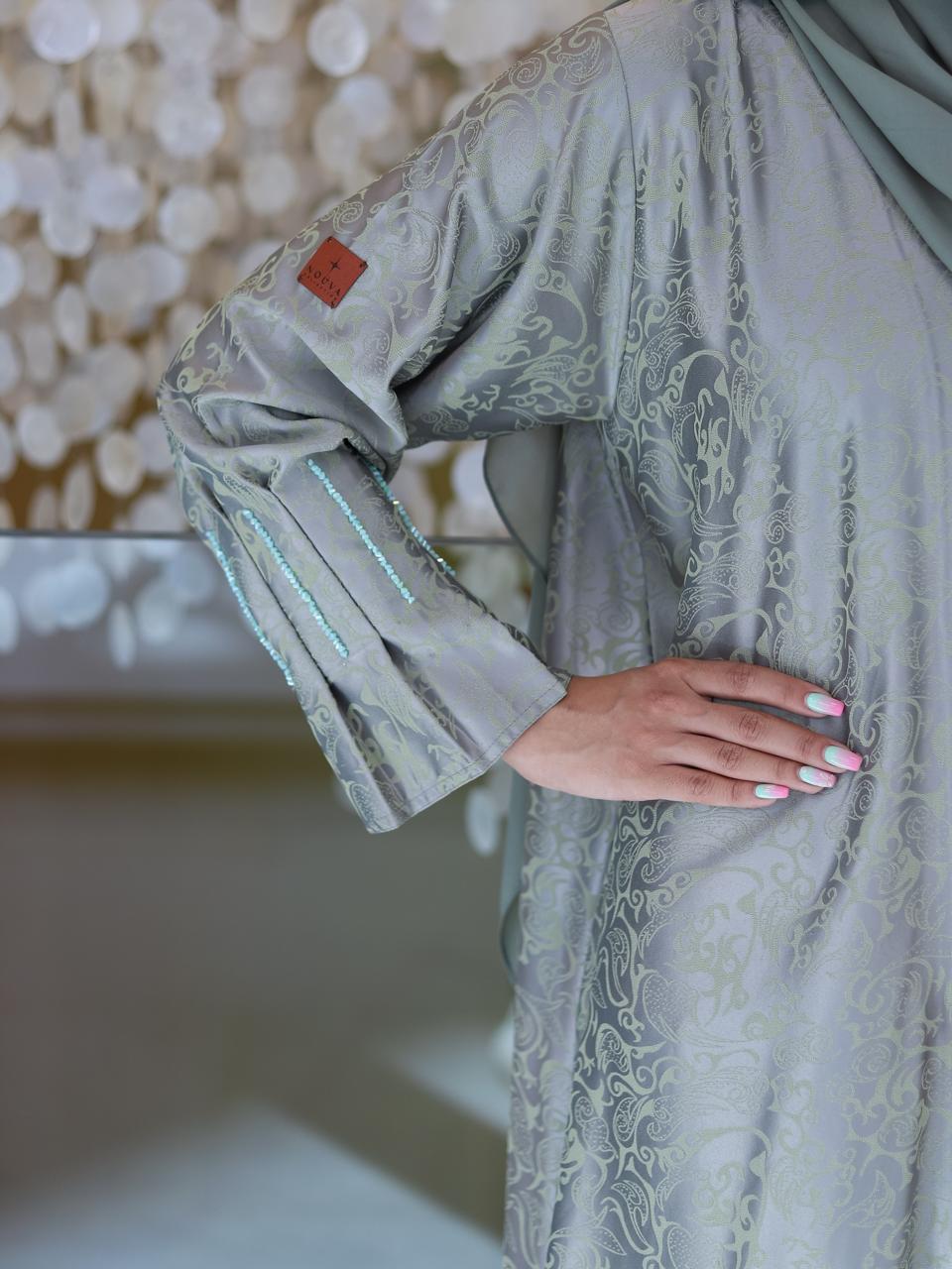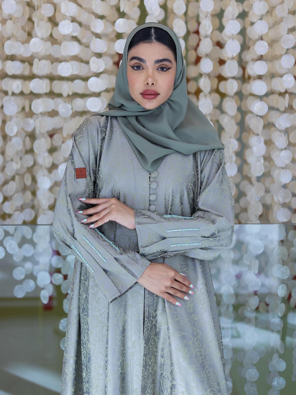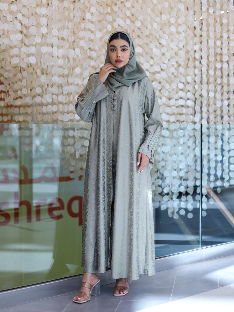 ضوء اللَيم” تحمل طابعًا ملكيًا متوازنًا بين البساطة والرقي. أزرارها الأمامية الدقيقة وتفاصيل أكمامها المطرزة تبرز جمال التفاصيل وجودة الصنعة.