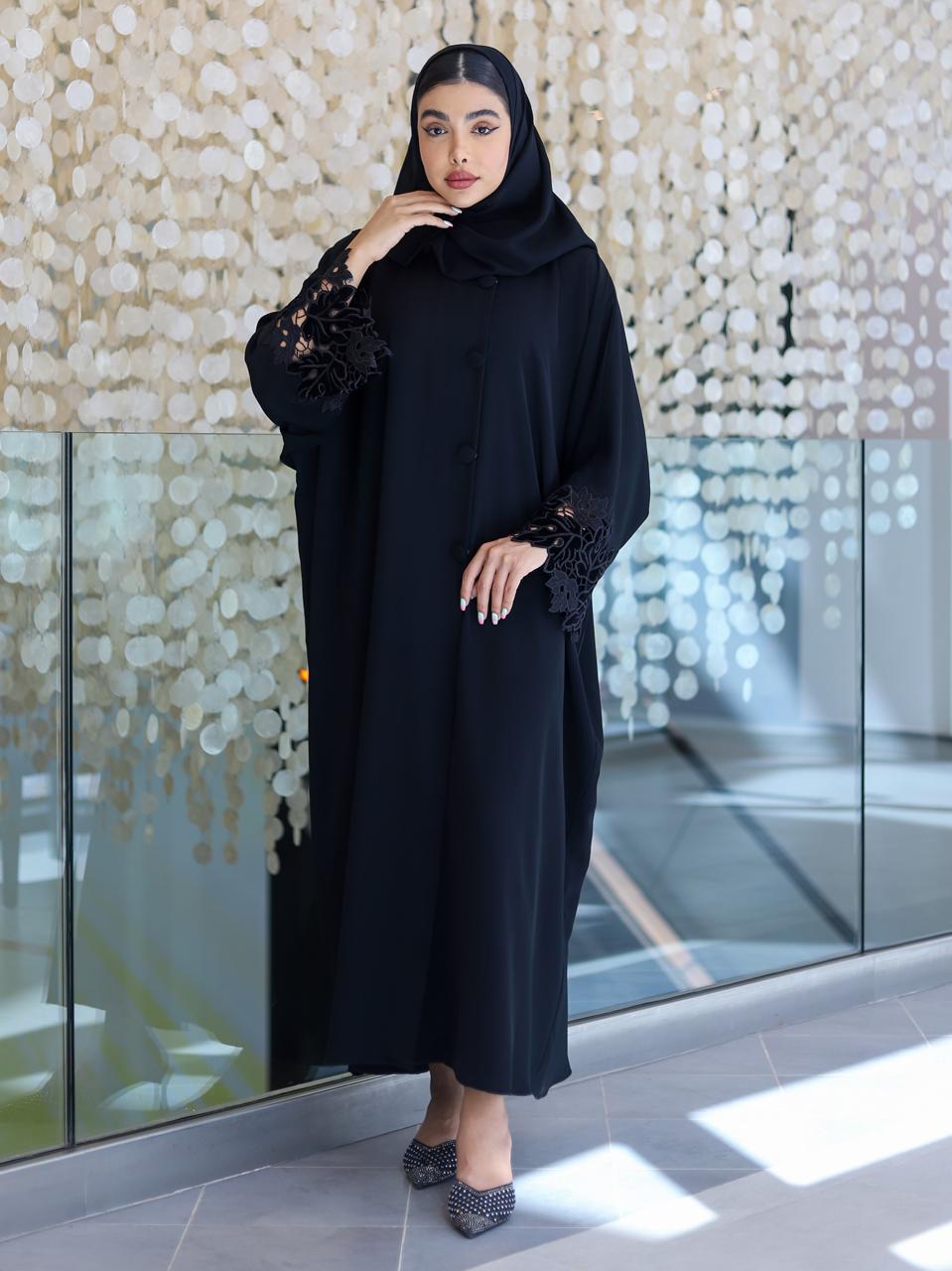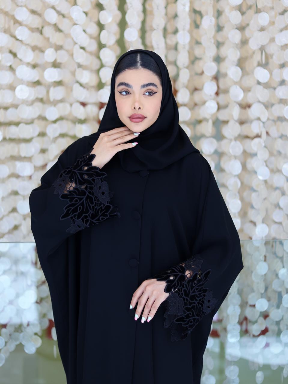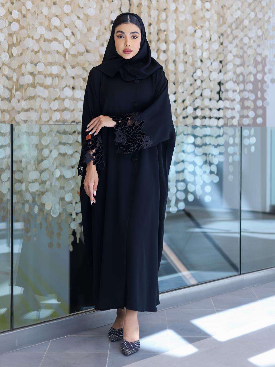 “لُجين” بتطريز أوراق فنيّ  ناعم على الأكمام يجمع بين القصّات العصرية والأناقة الكلاسيكية. أكمامها المنحوتة بتطريز دقيق تضيف بعدًا دراميًا راقيًا يلفت الأنظار دون ضجيج.